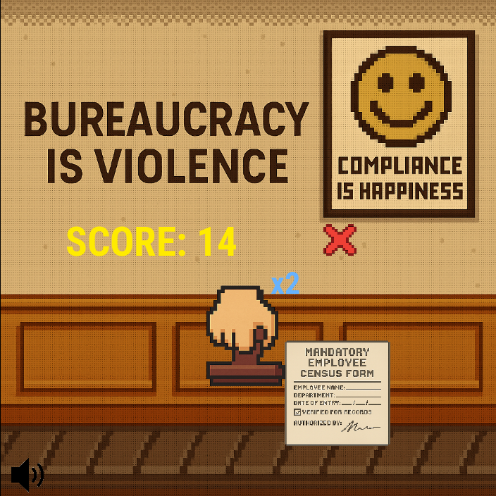 Thanks for checking out Bureaucracy is Violence and supporting a first-time Godot dev!